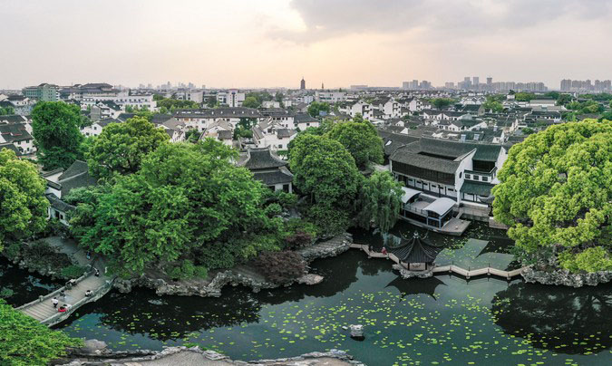 Aerial photo taken on May 9, 2019 shows a view of the Lion Forest Garden in Suzhou, east China's Jiangsu Province. (Xinhua/Li Bo)