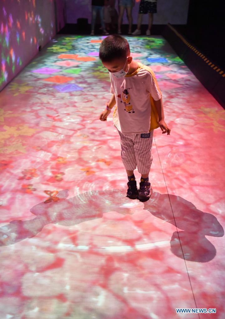 A boy visits the teamLab Future Park during an art festival themed on science and technology in Xi'an, northwest China's Shaanxi Province, June 6, 2021. (Xinhua/Shao Rui)