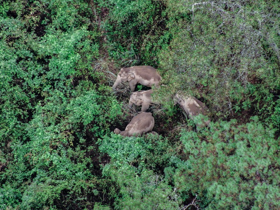 The herd, which left the Xishuangbanna National Nature Reserve last year and started marching north, arrived at a forest outside a village in Xiyang township, about 90 kilometers southwest of Kunming, Yunnan's provincial capital, on Monday.