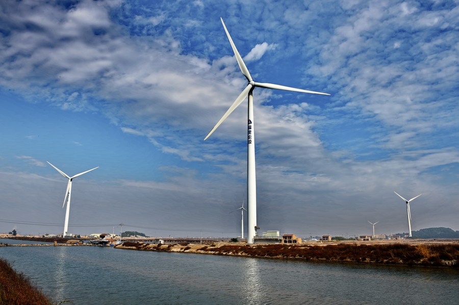 Photo taken on Dec. 20, 2018 shows the wind power generators in Putian, east China's Fujian Province. (Xinhua/Zhang Guojun)