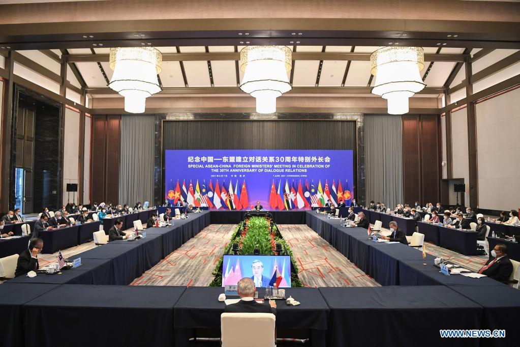 The Special ASEAN-China Foreign Ministers' Meeting in Celebration of the 30th Anniversary of Dialogue Relations is held in Chongqing, southwest China, June 7, 2021. (Xinhua/Wang Quanchao)