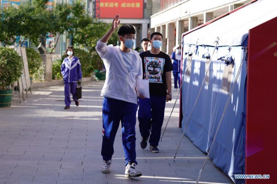 An examinee walks out of an exam site at a middle school in Beijing, capital of China, June 10, 2021. The annual college entrance exam concluded Thursday in Beijing. (Xinhua/Peng Ziyang)