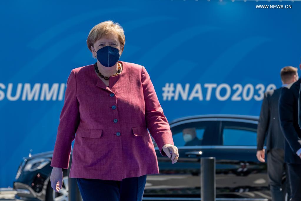 German Chancellor Angela Merkel arrives for a NATO summit at NATO headquarters in Brussels, Belgium, on June 14, 2021. Leaders of the North Atlantic Treaty Organization (NATO) held a face-to-face summit on Monday to show their unity and agreed on the "NATO 2030" agenda to address future challenges. (NATO/Handout via Xinhua)
