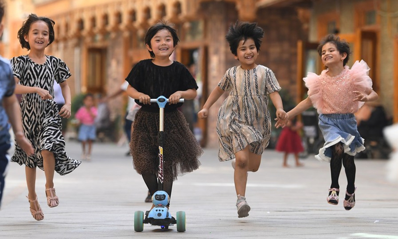 Children have fun in "Dove Lane" in the old town Tuancheng of Hotan City, northwest China's Xinjiang Uygur Autonomous Region, May 27, 2020. Photo: Xinhua