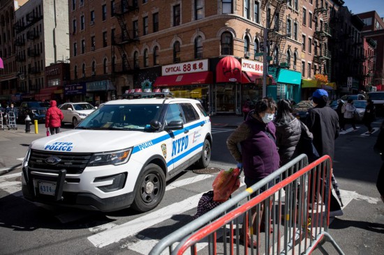 A police car is seen patrolling in Chinatown of New York, the United States, March 19, 2021. (Photo by Michael Nagle/Xinhua)