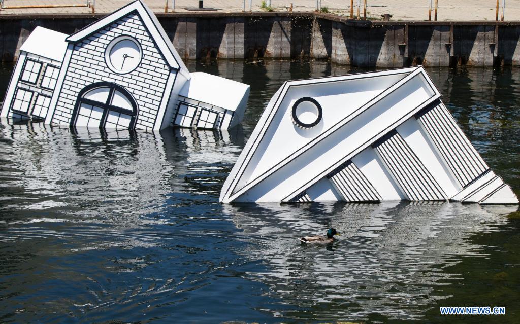The art installation Over Floe is seen at Ontario Place in Toronto, Canada, on June 15, 2021. Made of some waste construction materials by artist John Notten, the public art project Over Floe aims to illustrate the harm of human-caused global warming as ice sheets melt and oceans expand, threatening the way of life around the shorelines of the world. (Photo by Zou Zheng/Xinhua)