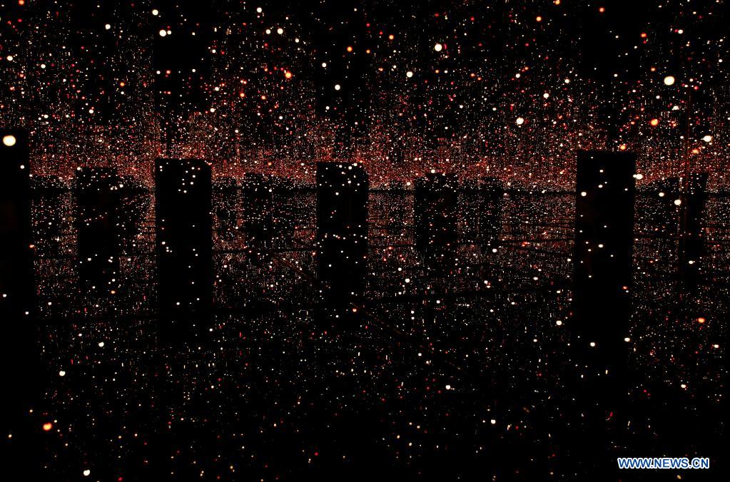 Photo taken on June 16, 2021 shows a general view of the exhibition 'YAYOI KUSAMA-INFINITY MIRROR ROOMS' at Tate Modern in London, Britain. (Xinhua/Han Yan)