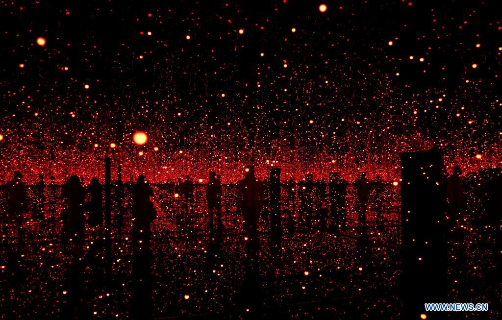 People visit the exhibition 'YAYOI KUSAMA-INFINITY MIRROR ROOMS' at Tate Modern in London, Britain, on June 16, 2021. (Xinhua/Han Yan)