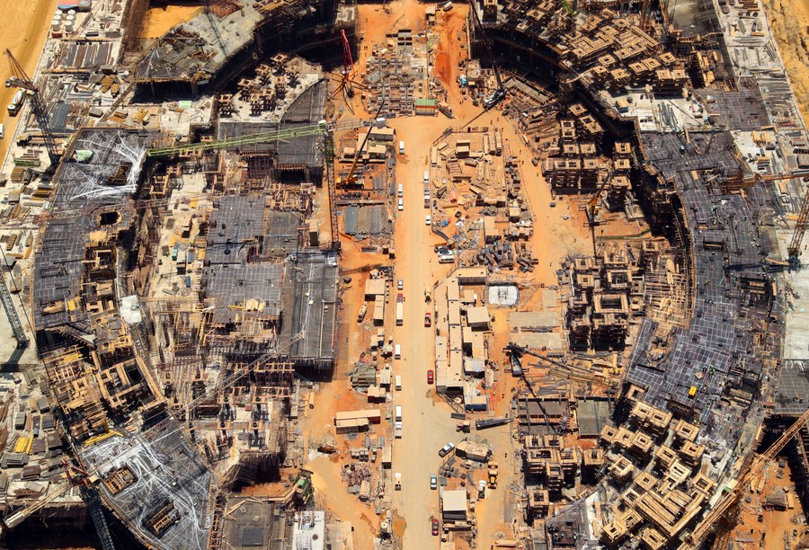 Photo taken on June 17, 2021 shows the construction site of the Central Business District (CBD) of Egypt's new administrative capital. (Xinhua/Sui Xiankai)