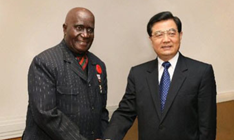 Hu praised that "during your tenure as President of Zambia, the Tanzania-Zambia Railway, built by China, Zambia and Tanzania, has become a monument in the history of China-Zambia, China-Tanzania, and China-Africa relations," according to People's Daily.