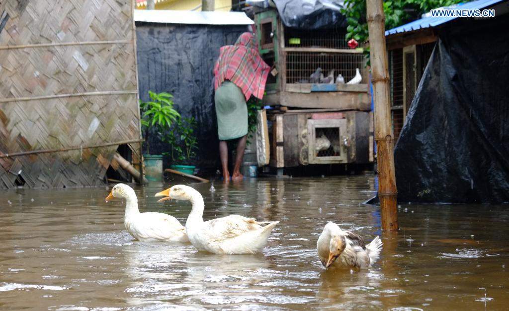 Ducks swim in a water-logged area after a heavy rainfall in Kolkata, India, June 19, 2021. (Str/Xinhua)