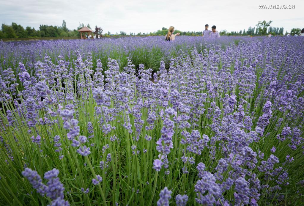 People visit a lavender farm in Richmond, British Columbia, Canada, June 19, 2021. (Photo by Liang Sen/Xinhua)