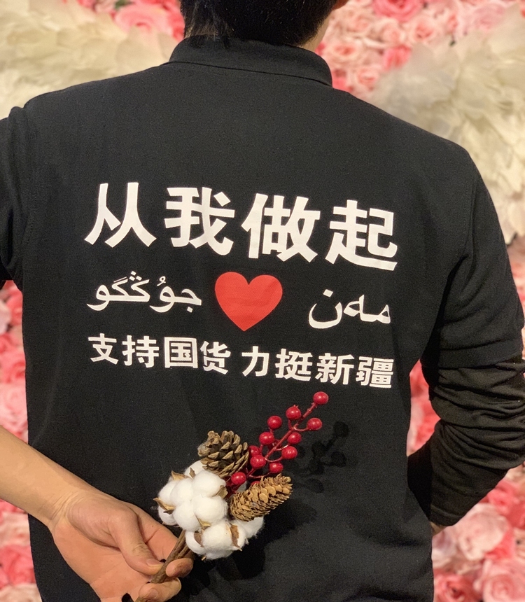 In order to draw more attention, they also organized some offline activities in a restaurant - all the waiters and waitresses wore T-shirts with the words "Support China-made products and support Xinjiang region" printed on them and customers at the restaurant were sent gifts decorated with Xinjiang cotton.