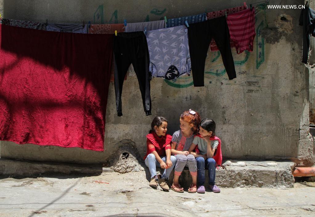 Palestinian refugee children are seen in Jabalia refugee camp in the northern Gaza Strip, on June 20, 2021, World Refugee Day. (Photo by Rizek Abdeljawad/Xinhua)