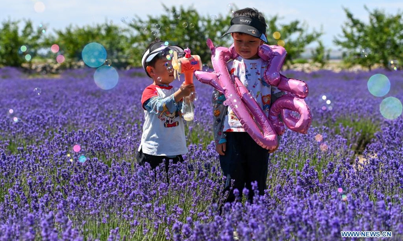 Children play in a lavender farm in Huocheng County, northwest China's Xinjiang Uygur Autonomous Region, June 13, 2021. (Photo: Xinhua)