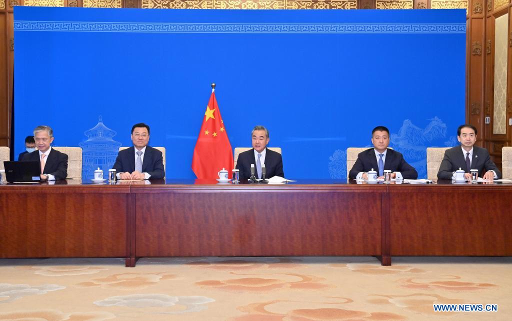 BEIJING, June 22 (Xinhua) -- Chinese State Councilor and Foreign Minister Wang Yi on Tuesday held a video talk with New Zealand Foreign Minister Nanaia Mahuta, calling for the promotion of cooperation on high-quality development.
