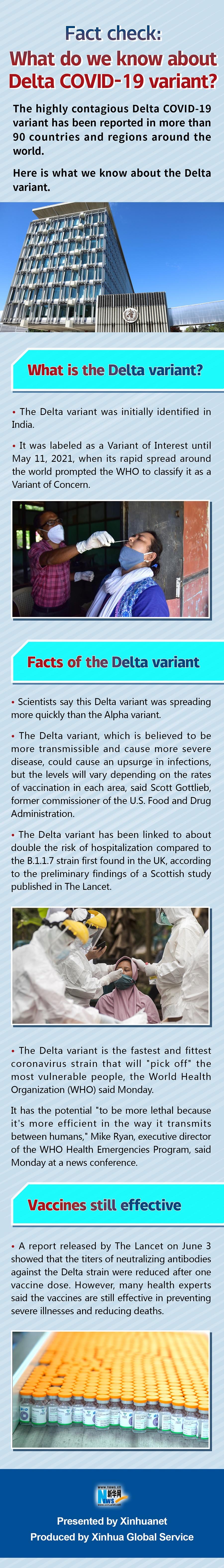 BEIJING, June 23 (Xinhua) -- The highly contagious Delta COVID-19 variant has been reported in more than 90 countries and regions around the world, posing a serious threat to the global pandemic fight and highlighting the urgency to build a global immunity barrier through mass vaccination.