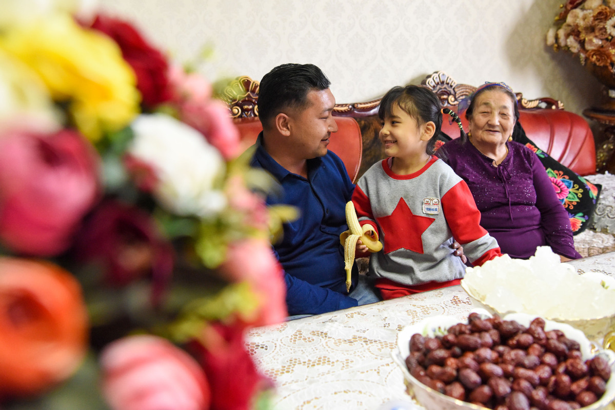 A Uygur family in Yuli county, Northwest China's Xinjiang Uygur autonomous region, April 15, 2021. [Photo/Xinhua]
