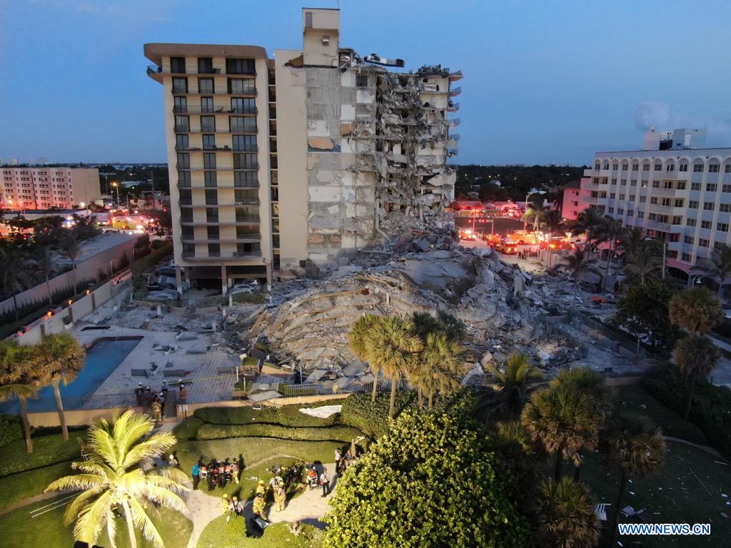 WASHINGTON, June 24 (Xinhua) -- At least one person was killed and 12 others were injured, while 99 people were possibly missing after a 12-story residential building partially collapsed early Thursday in Miami-Dade County in the southeastern U.S. state Florida, local media reported Thursday.