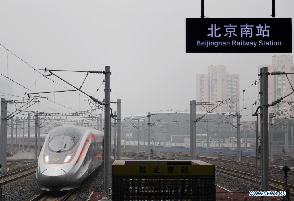 Train G5, a Fuxing intelligent bullet train, arrives at Beijing South Railway Station in Beijing, capital of China, June 25, 2021. The Fuxing intelligent bullet trains were put into operation on some railway lines on Friday. (Xinhua/Zhang Chenlin)