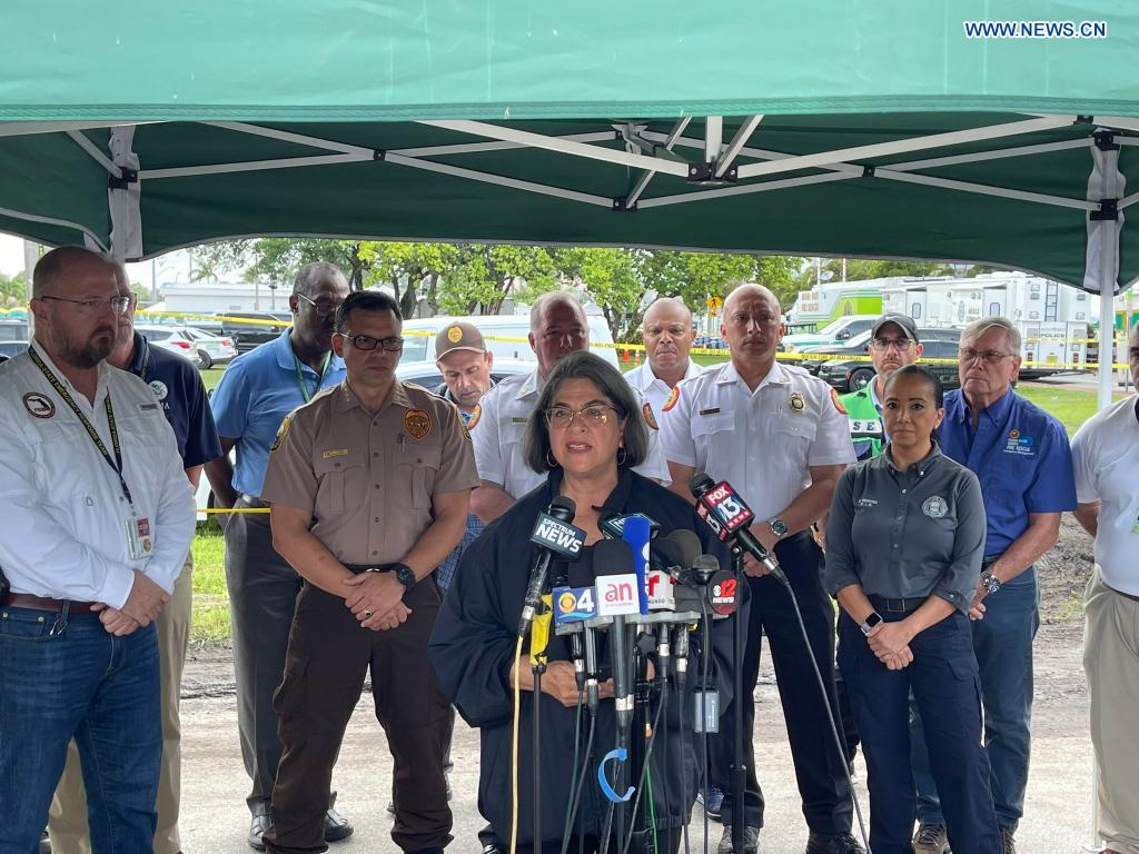 Photo released by the Miami-Dade Fire Rescue on June 25, 2021 shows a media briefing regarding the Surfside building collapse in Miami-Dade County, Florida, the United States. At least four people have been confirmed dead while the number of the missing rose to 159 after a 12-story residential building partially collapsed early Thursday in Miami-Dade County in southeastern U.S. state Florida, local media reported on Friday. (Miami-Dade Fire Rescue/Handout via Xinhua)