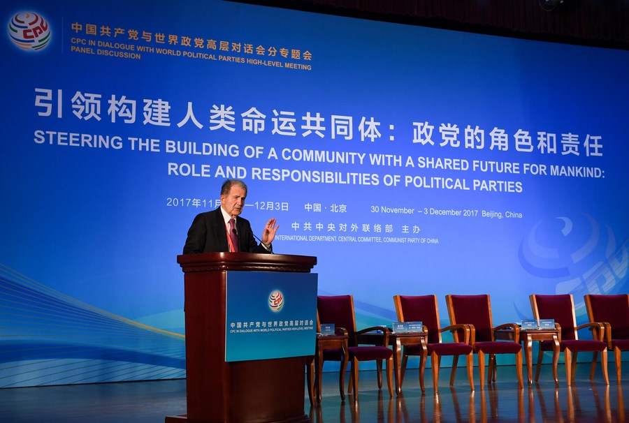 Former Italian Prime Minister Romano Prodi speaks at the panel discussion during the Communist Party of China in Dialogue with World Political Parties High-Level Meeting in Beijing, capital of China, Dec. 2, 2017. (Xinhua/Chen Yehua)
