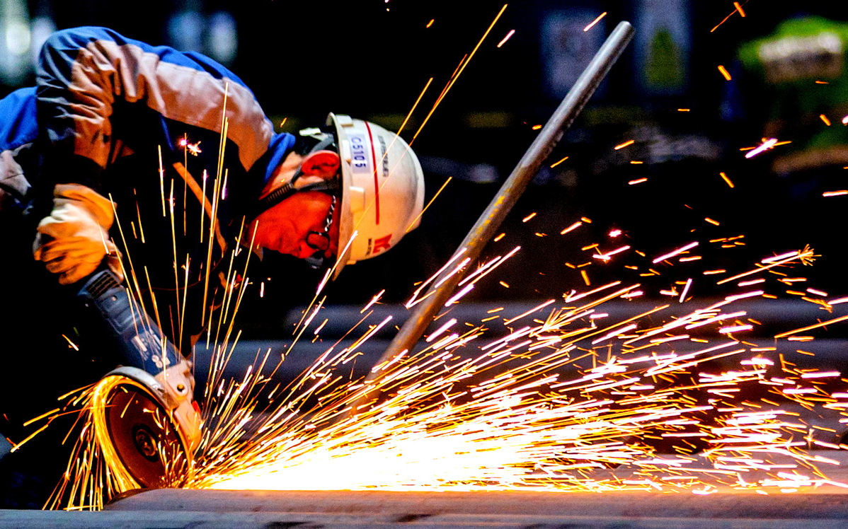 An employee polishes steel products at a Baowu Steel production facility in Maanshan, Anhui province, on March 5. LUO JISHENG/FOR CHINA DAILY
