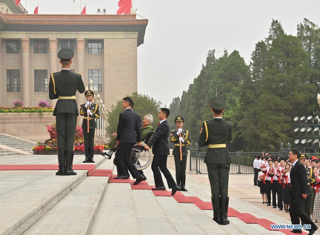 A recipient of the July 1 Medal arrives at the Great Hall of the People in Beijing, capital of China, June 29, 2021. A ceremony is about to be held Tuesday morning to award the July 1 Medal, the highest honor in the Communist Party of China (CPC), to outstanding Party members for the first time. The ceremony will be held at the Great Hall of the People in Beijing. (Xinhua/Yue Yuewei)