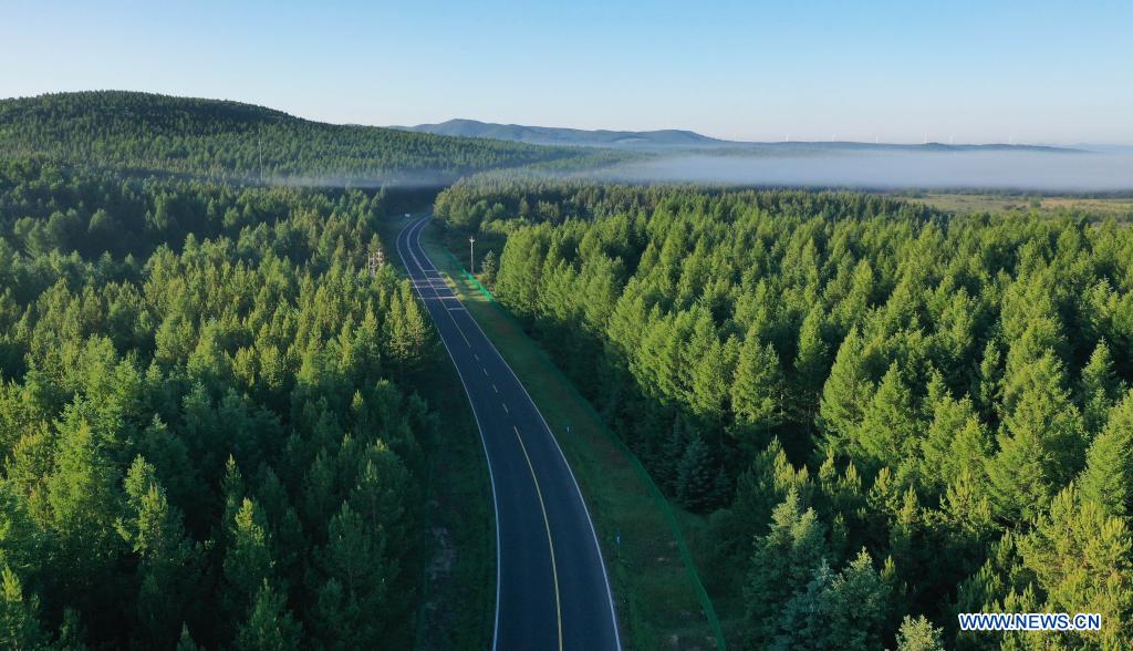 Aerial photo taken on June 27, 2021 shows the scenery in Saihanba National Forest Park in Chengde, north China's Hebei Province. (Xinhua/Yang Shiyao)