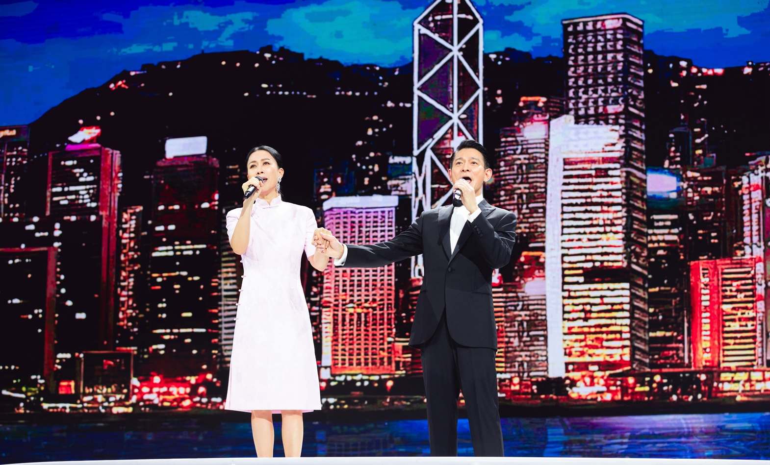 Celebrated actor and singer Andy Lau, together with pop diva Na Ying, perform the classic song "The Pearl of the Orient" again after 24 years at the gala in Beijing, China, June 26, 2021. /Weibo