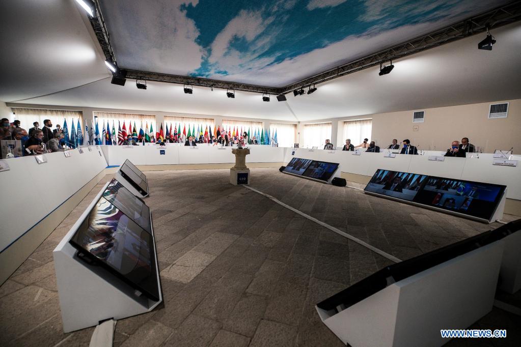 Participants attend the meeting of the Group of 20 (G20) ministers of foreign affairs and development in Matera, Italy, on June 29, 2021. Ministers of foreign affairs and development from the world's 20 biggest economies on Tuesday called on the entire international community to build inclusive and resilient food chains, to ensure adequate nutrition for all, in line with the goal of "Zero Hunger" set for 2030. (Angelo Carconi/ANSA/Handout via Xinhua)