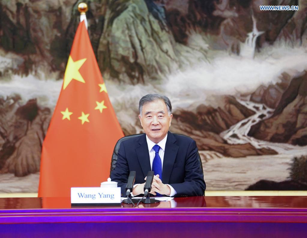 BEIJING, June 29 (Xinhua) -- China's top political advisor Wang Yang met with Sinlavong Khoutphaythoune, president of the Lao Front for National Construction (LFNC) via video link Tuesday, pledging to enhance friendly exchanges between the two sides.