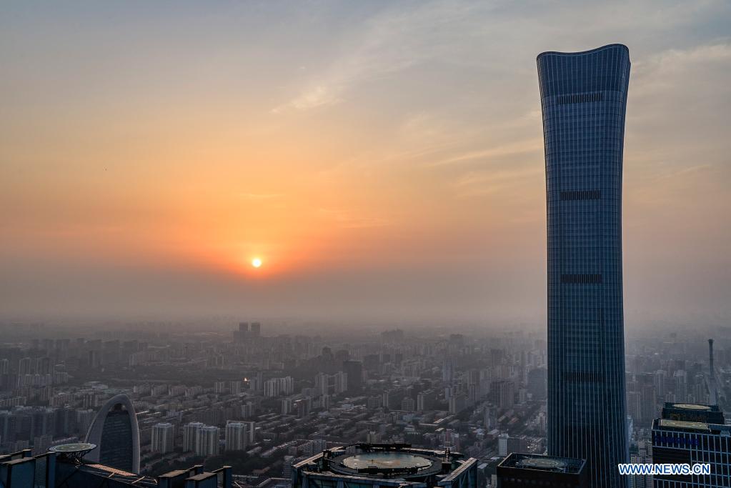 The sun rises in Beijing, capital of China, on July 1, 2021. (Xinhua/Xu Qin)