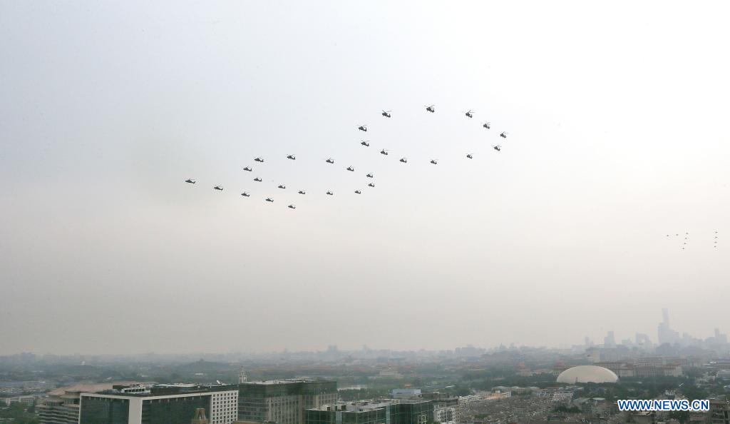 Military aircraft fly in echelons ahead of a grand gathering celebrating the Communist Party of China (CPC) centenary in Beijing, capital of China, July 1, 2021. (Xinhua/Li Mengjiao)
