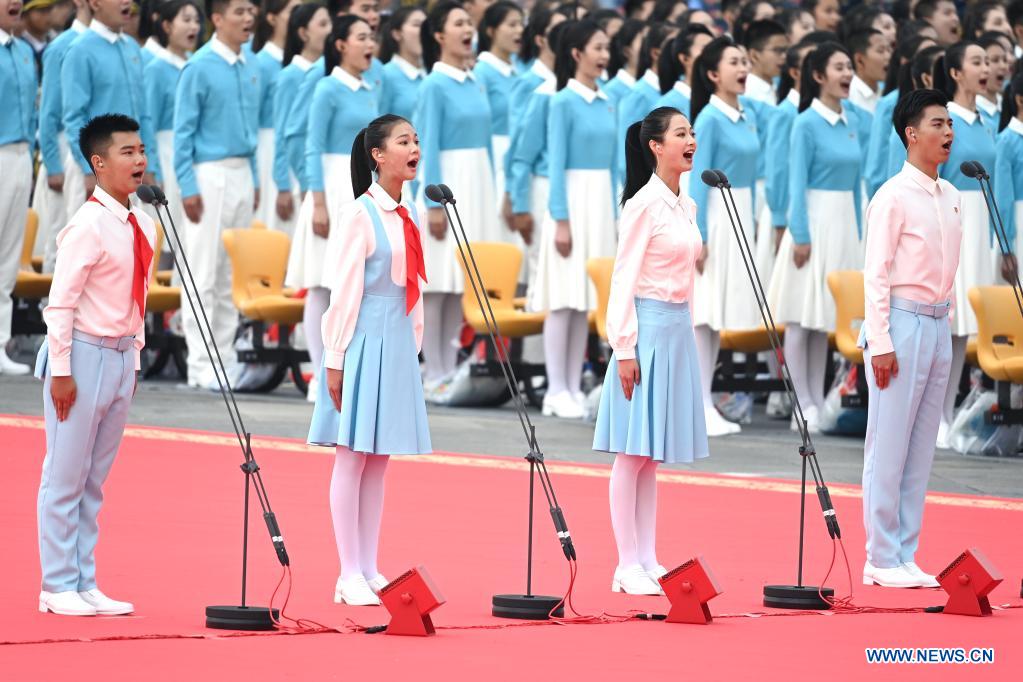 Representatives of the Chinese Communist Youth League members and Young Pioneers salute the Communist Party of China (CPC) and express commitment to the Party's cause at a ceremony marking the CPC centenary at Tian'anmen Square in Beijing, capital of China, July 1, 2021. (Xinhua/Li Ga)