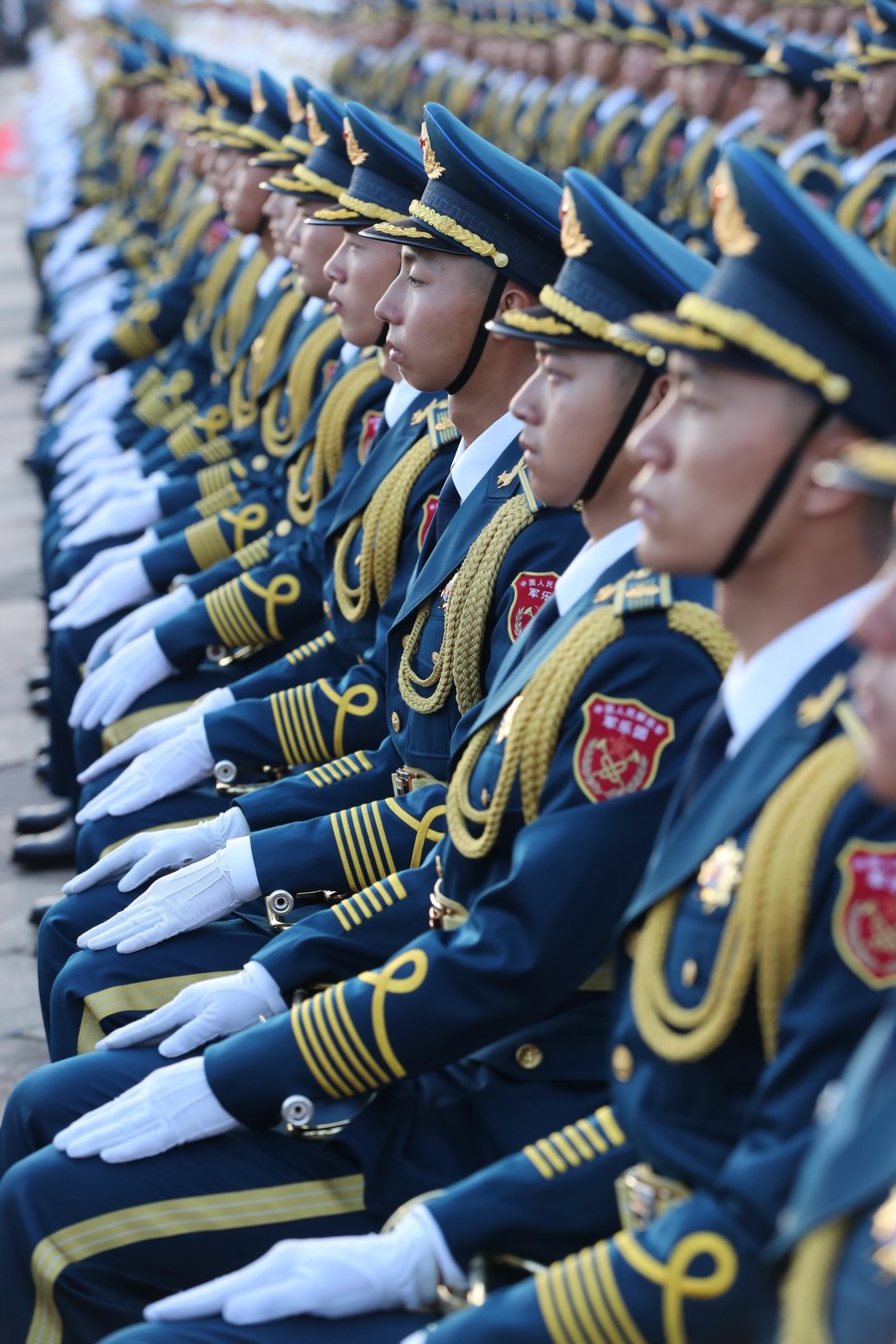 Members of the military band make preparations for a grand gathering celebrating the Communist Party of China (CPC) centenary at Tian'anmen Square in Beijing, capital of China, July 1, 2021. (Xinhua/Jin Liwang)