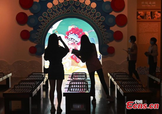 People visit an exhibition at Hebei Museum in Shijiazhuang on June 30, 2021. The exhibition that kicked off on Wednesday presented achievements of the provincial intangible cultural heritage conservation. (Photo: China News Service/ Zhai Yujia)