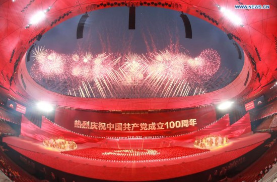 An art performance titled "The Great Journey" is held in celebration of the 100th anniversary of the founding of the Communist Party of China (CPC) at the National Stadium in Beijing, capital of China, on the evening of June 28, 2021. (Xinhua/Pang Xinglei)