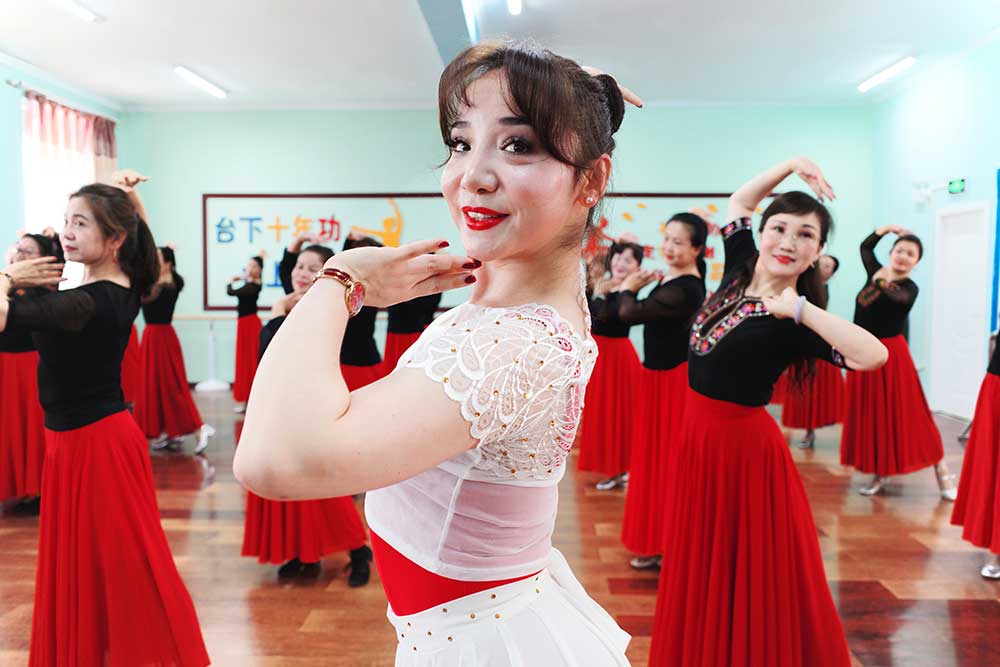 The enthusiasm for injecting modern vitality into traditional culture is shared by many young people in Xinjiang. 30-year-old Gulbanum Imin, a teacher and an owner of a local Uyghur dance school, is a local celebrity in Korla. Her school, which teaches traditional Uyghur dance, has attracted over 400 students from between the ages of 5 and 60, most of whom are not Uyghurs.