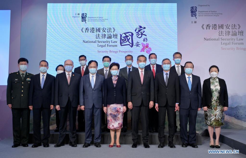 The forum, entitled "National Security Law Legal Forum -- Security Brings Prosperity," was organized by the Department of Justice of the Hong Kong Special Administrative Region (HKSAR) government online and offline. It aimed at enhancing people's understanding of the national security law in Hong Kong.