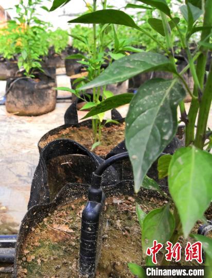 Photo shows a sensor that can detect the amount of water and nutrition the roots of the pepper needs in a pot. (Photo/Shi Yujiang)