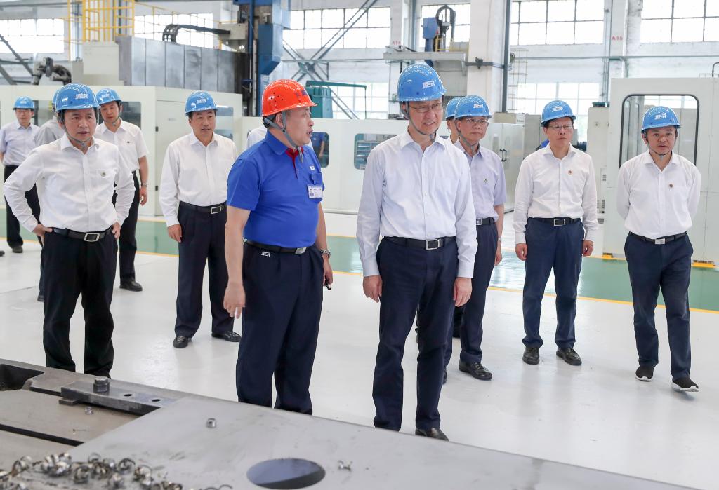 Chinese Vice Premier Han Zheng, also a member of the Standing Committee of the Political Bureau of the Communist Party of China Central Committee, inspects the Jier Machine-Tool Group Co., Ltd. in east China's Shandong Province, July 6, 2021. Han made an inspection tour to east China's Shandong Province from Monday to Tuesday. (Xinhua/Yao Dawei)