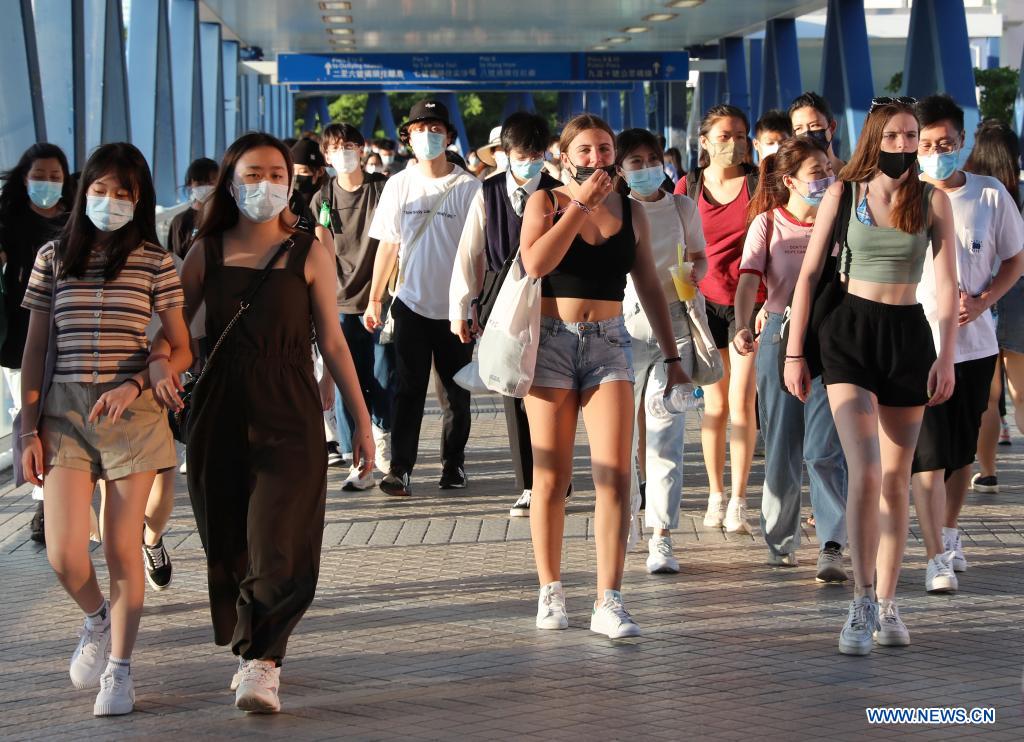 Photo taken on July 8, 2021 shows pedestrians in the Central district of Hong Kong, south China. (Xinhua/Wu Xiaochu)