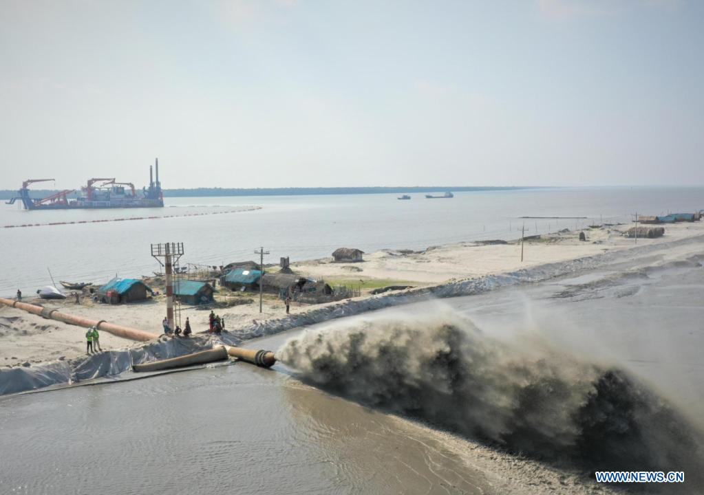 Photo taken on April 20, 2021 shows the dredging site in Mongla seaport in Bagerhat, Bangladesh. (Xinhua)