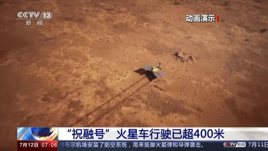 China's Zhurong Mars probe drove for over 410 meters on the Red Planet, as of 20:00 BJT on Sunday, said China's National Space Administration (CNSA), adding the probe functions well.