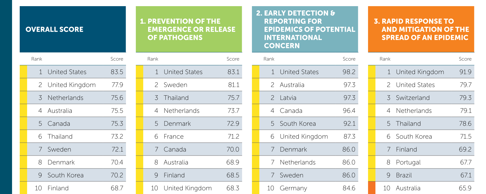 Previously, America ranked first on the 2019 Global Health Security Index compiled by Johns Hopkins Center for Health Security, with its overall score topping the charts and “the rapid response to and mitigation of the spread of an epidemic” second only to the United Kingdom. We all know what happened the following year.