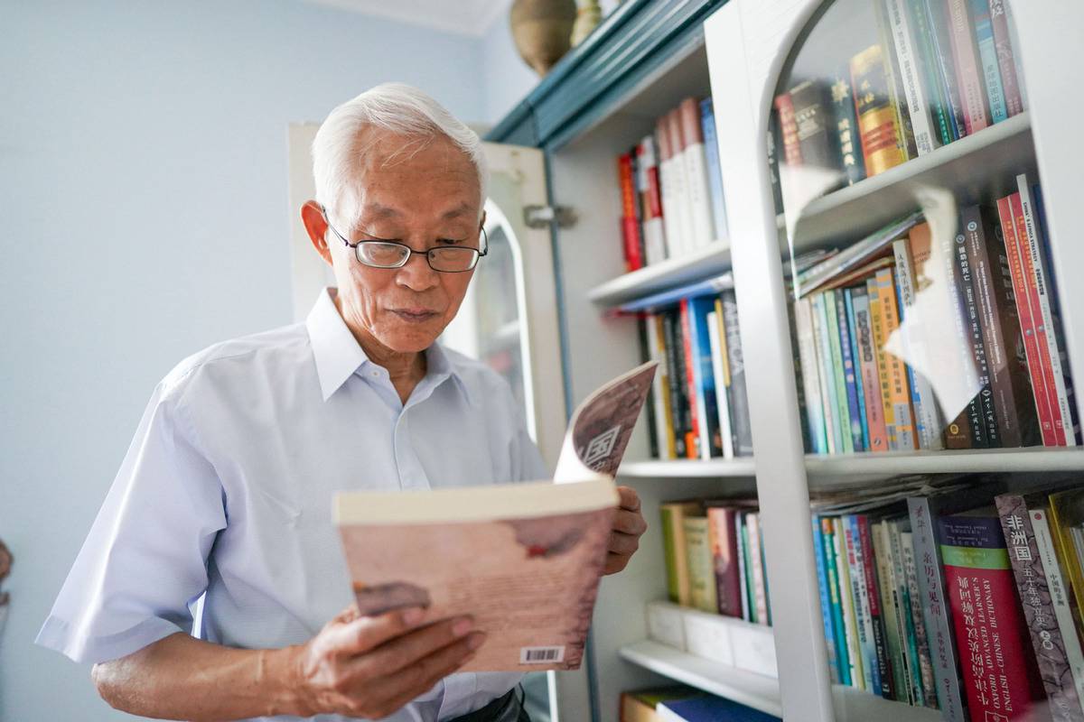 Liu Guijin, former Chinese ambassador to Zimbabwe and South Africa, reads a book at home in Beijing, on June 18, 2021. (Photo/Xinhua)