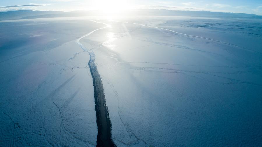 Aerial photo taken on Jan. 16, 2019 shows a view of Qinghai Lake in northwest China's Qinghai Province. (Xinhua/Wu Gang)