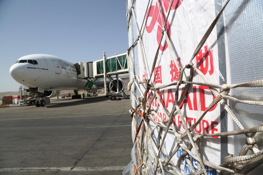 Photo taken on April 25, 2021 shows the handover ceremony of emergency food assistance in Kabul, capital of Afghanistan. (Photo by Rahmatullah Alizadah/Xinhua)
