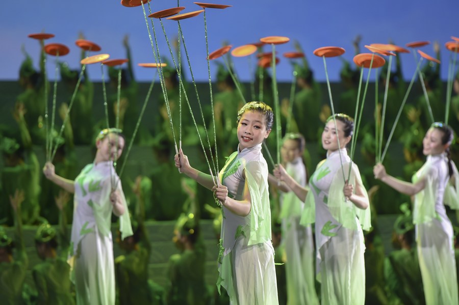 Artists perform at the opening ceremony of the 44th session of the World Heritage Committee of UNESCO in Fuzhou, southeast China's Fujian Province, July 16, 2021. (Xinhua/Song Weiwei)